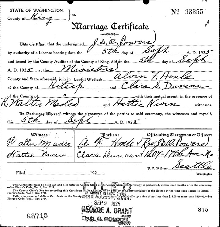 Joseph Harvey (Alvin Francis) HOULE & Clara Sadie RAND